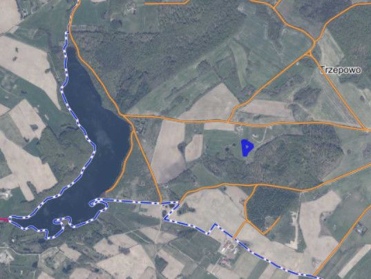W pobliżu jeziora - najbliższe ok. 800 m Jezioro Łąkie.