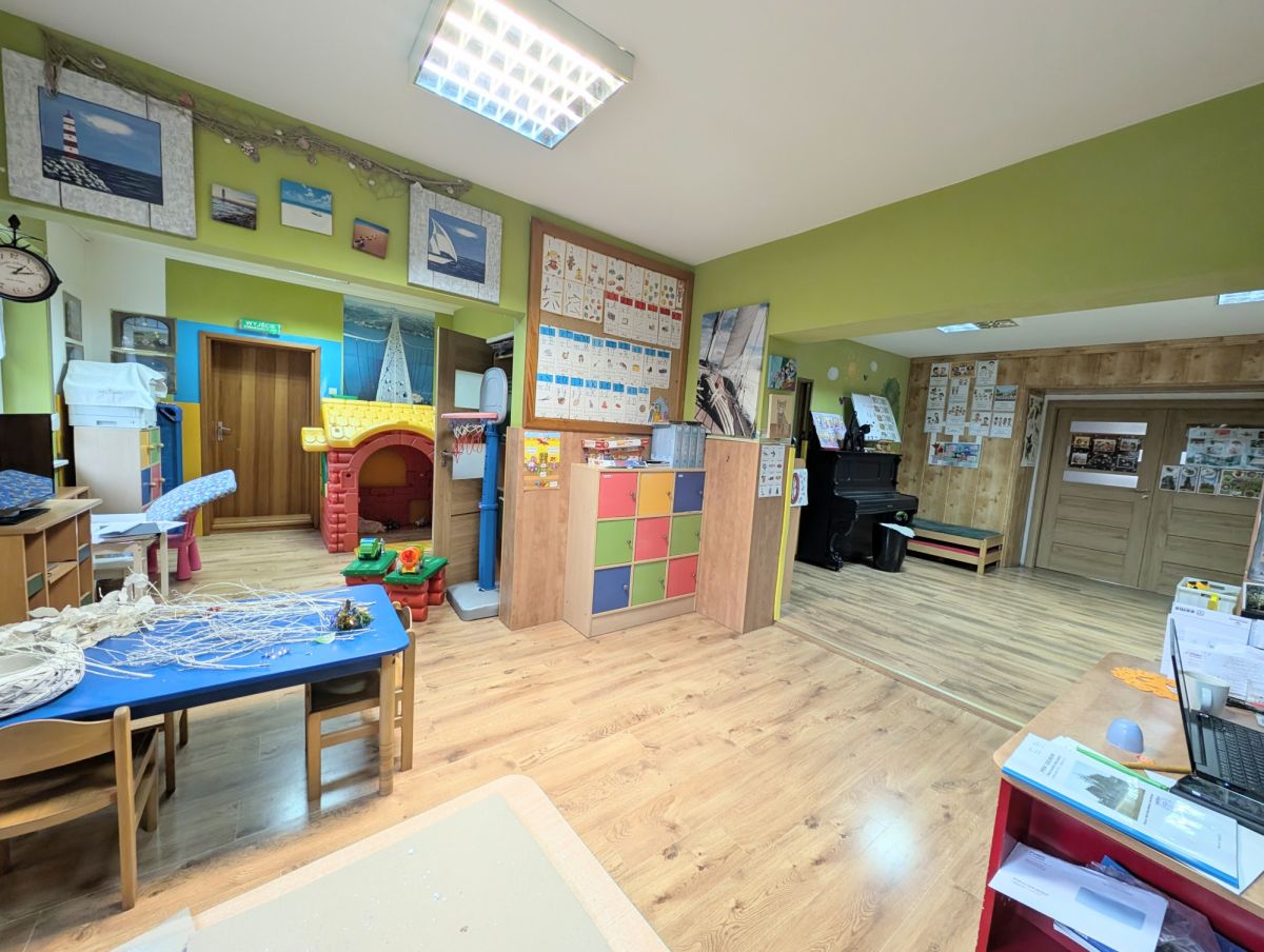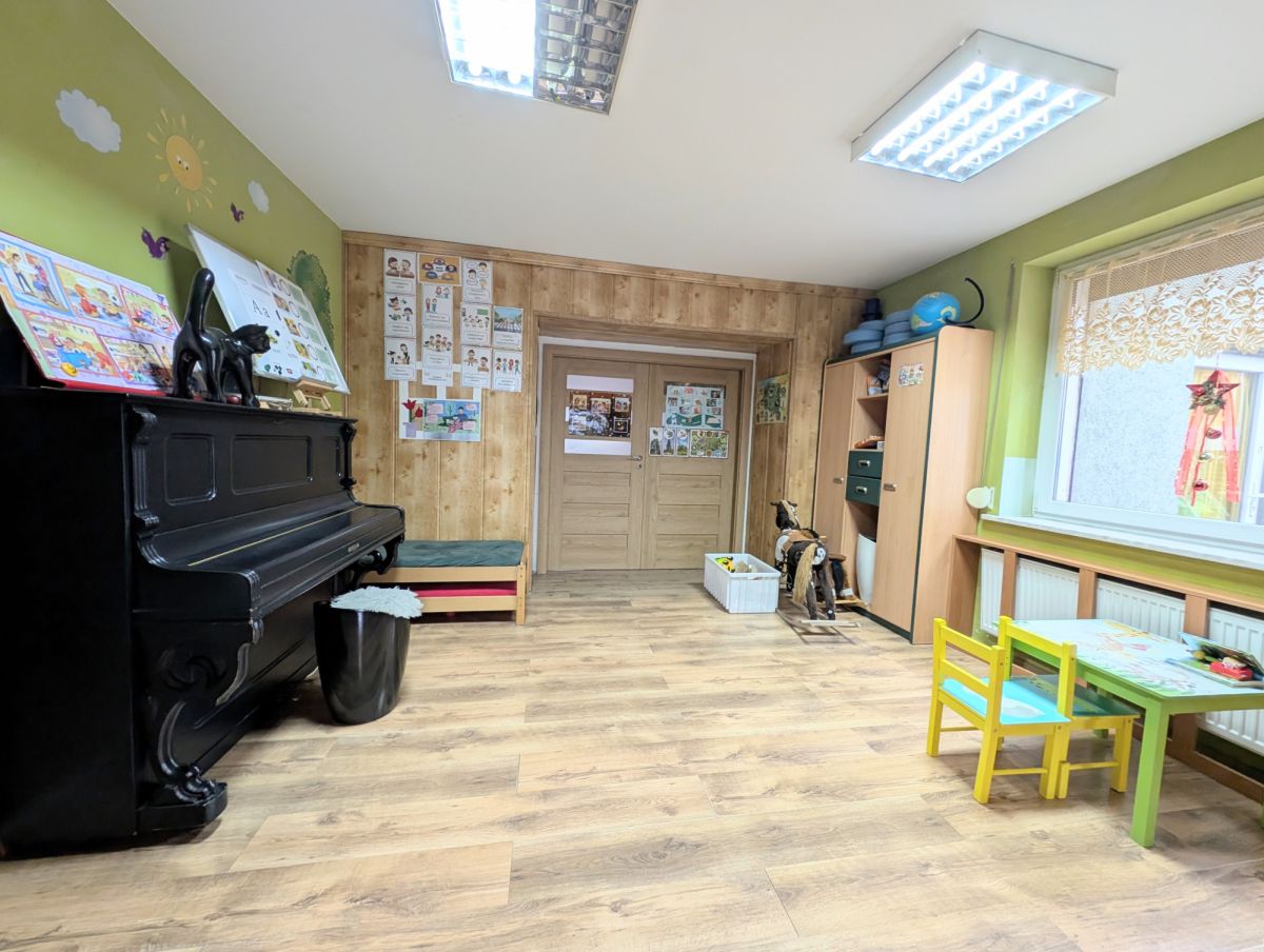 Przez lata funkcjonował tu żłobek - lokal jest przystosowany do tego typu działalności; spełnia wymagania dla placówek opiekuńczych.