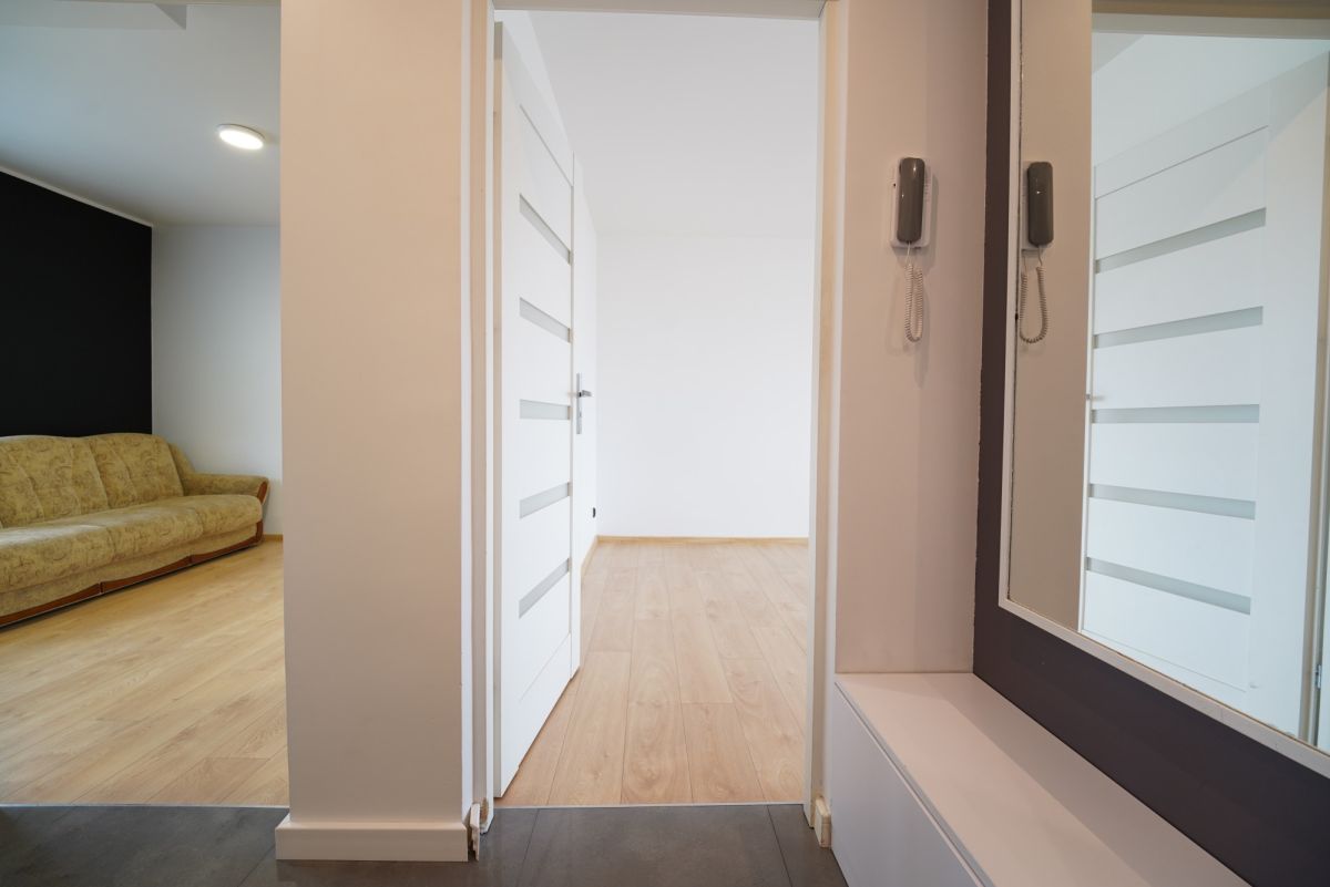 W korytarzu znajduje się duża szafa w zabudowie. W sypialni również jest duża szafa, przesuwana z lustrem.