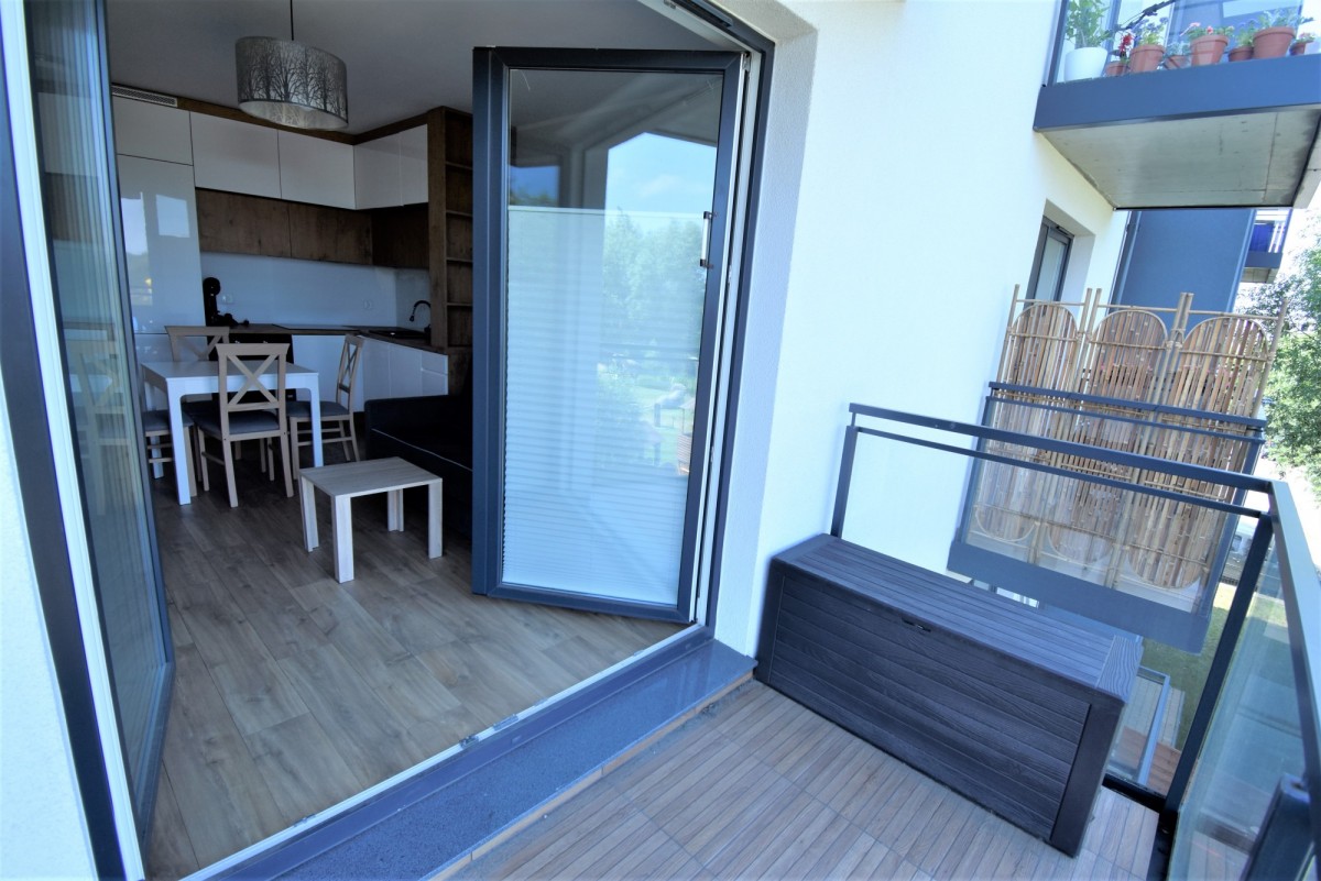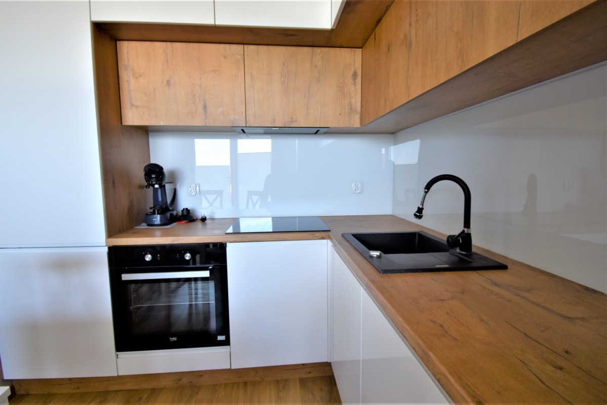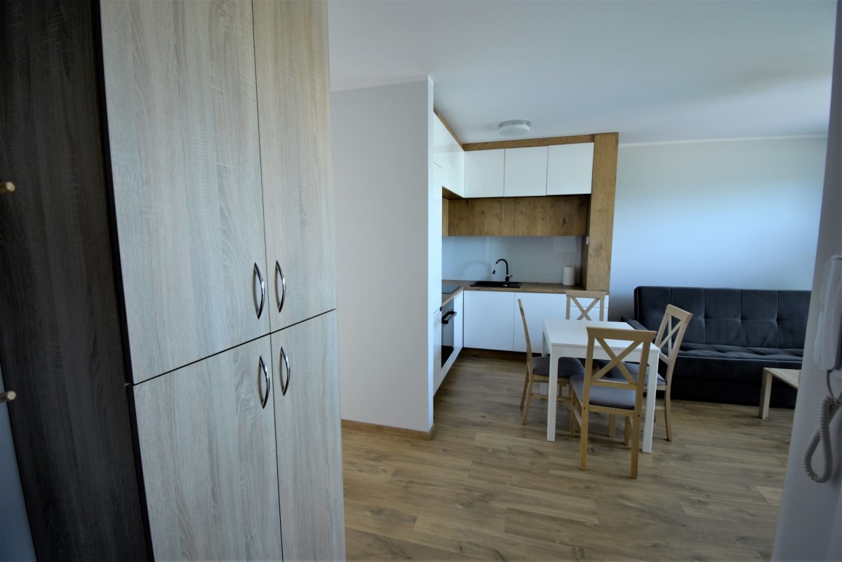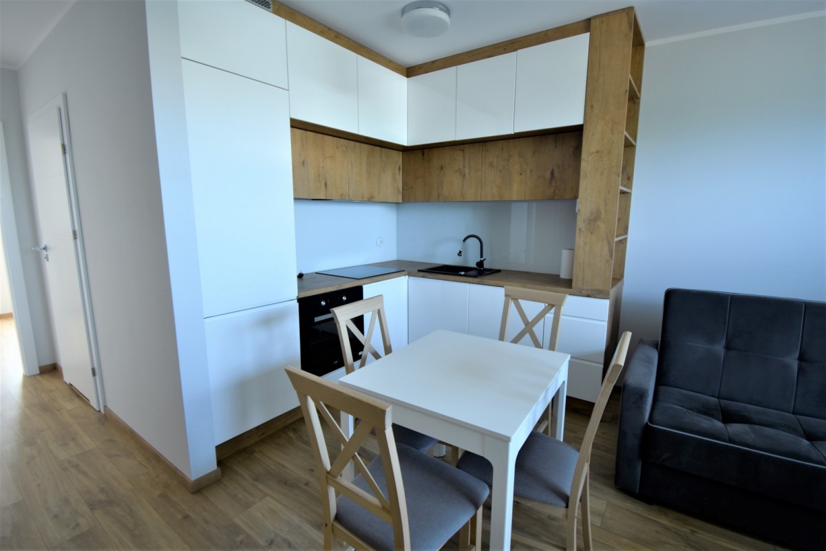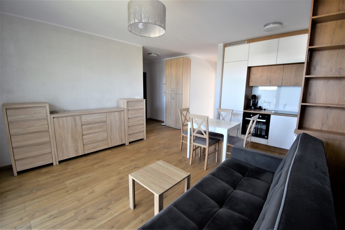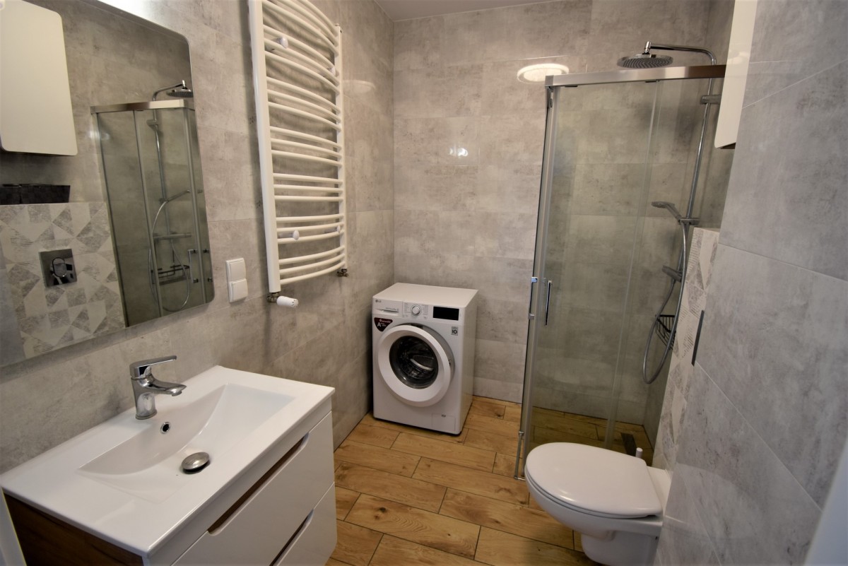 Mieszkanie jest w pełni umeblowane i posiada podstawowe sprzęty RTV i AGD tj. lodówka, pralka, piekarnik, płyta, zmywarka.
